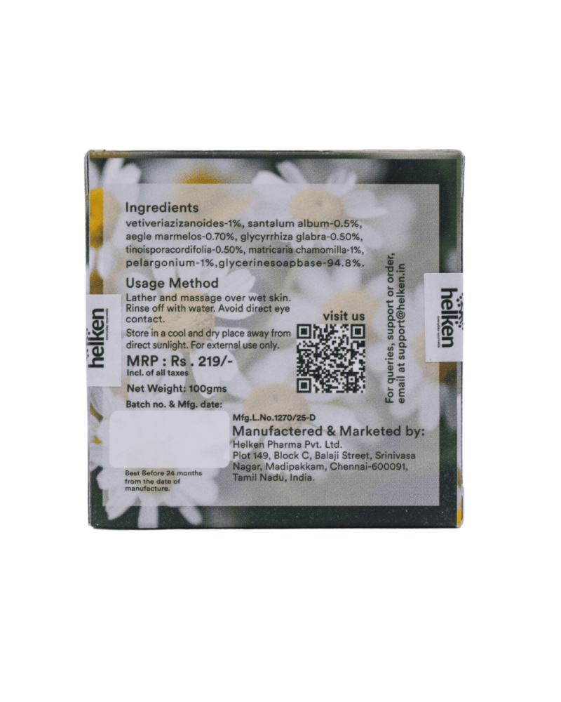 ken-care chamomile with geranium variant is a handmade unique blend of pure chamomile and geranium extracts which will give a natural and glowing makeover to your dry, sensitive and irritated skin.